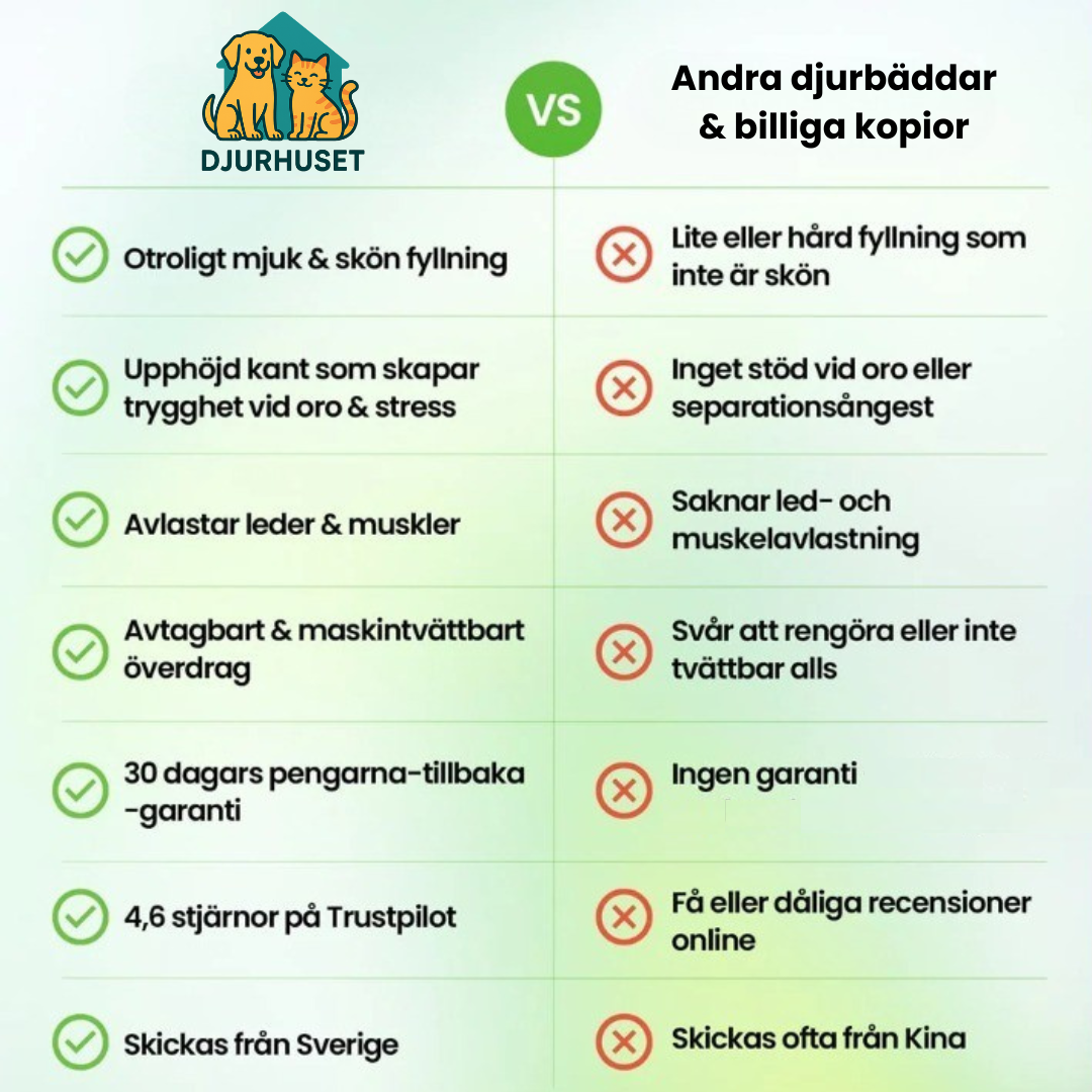 Till skillnad från billiga kopior får du hos Djurhuset en fluffig och stödjande bädd som behåller formen över tid